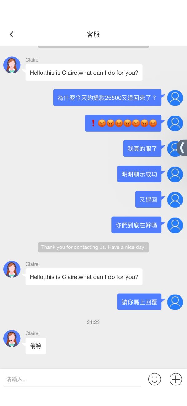 我3.9號提款,然後一直被無理退回,客服溝通了一個禮拜都是不一樣的藉口,甚至要求要我給skrill賬號後客服直接消失!現在已經完全失聯了!