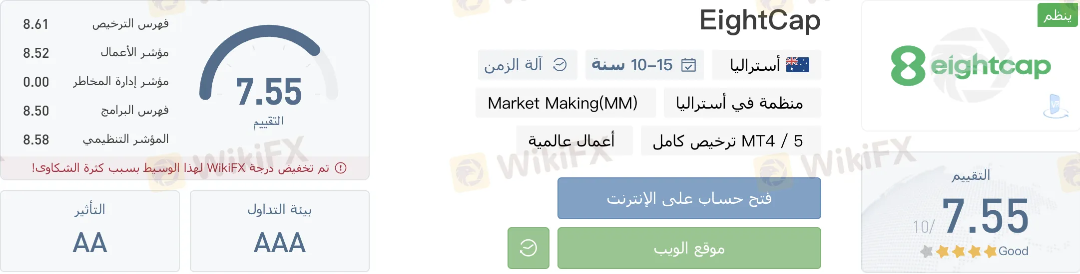 و لدية تصنيف WikiFX 7،55 / 10.