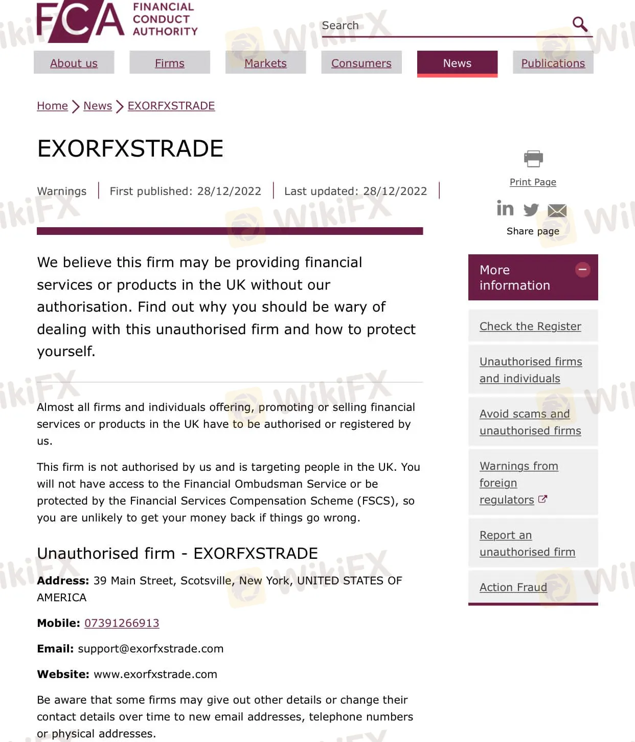 وفقًا لـ FCA ، لا يحق للوسيط تقديم خدمات مالية. في الواقع ، صرحت هيئة السلوك المالي (FCA) أنه ليس وسيط مرخص ، وبالتالي لن تحصل على أي حماية. تثبت مثل هذه التحذيرات بشكل شبه مؤكد أن شركة ما تقوم بنوع من عمليات الاحتيال - لذا امتنع عن اختيار الشركات المشبوهة التي حظيت بتقييم سلبي من السلطات المالية ذات السمعة الطيبة مثل FCA. الطريقة الوحيدة للتأكد من أن استثمارك في أيد أمينة وأنك ستعامل بإنصاف ووفقًا لجميع القوانين هي اللجوء إلى وسيط شرعي ومرخص.