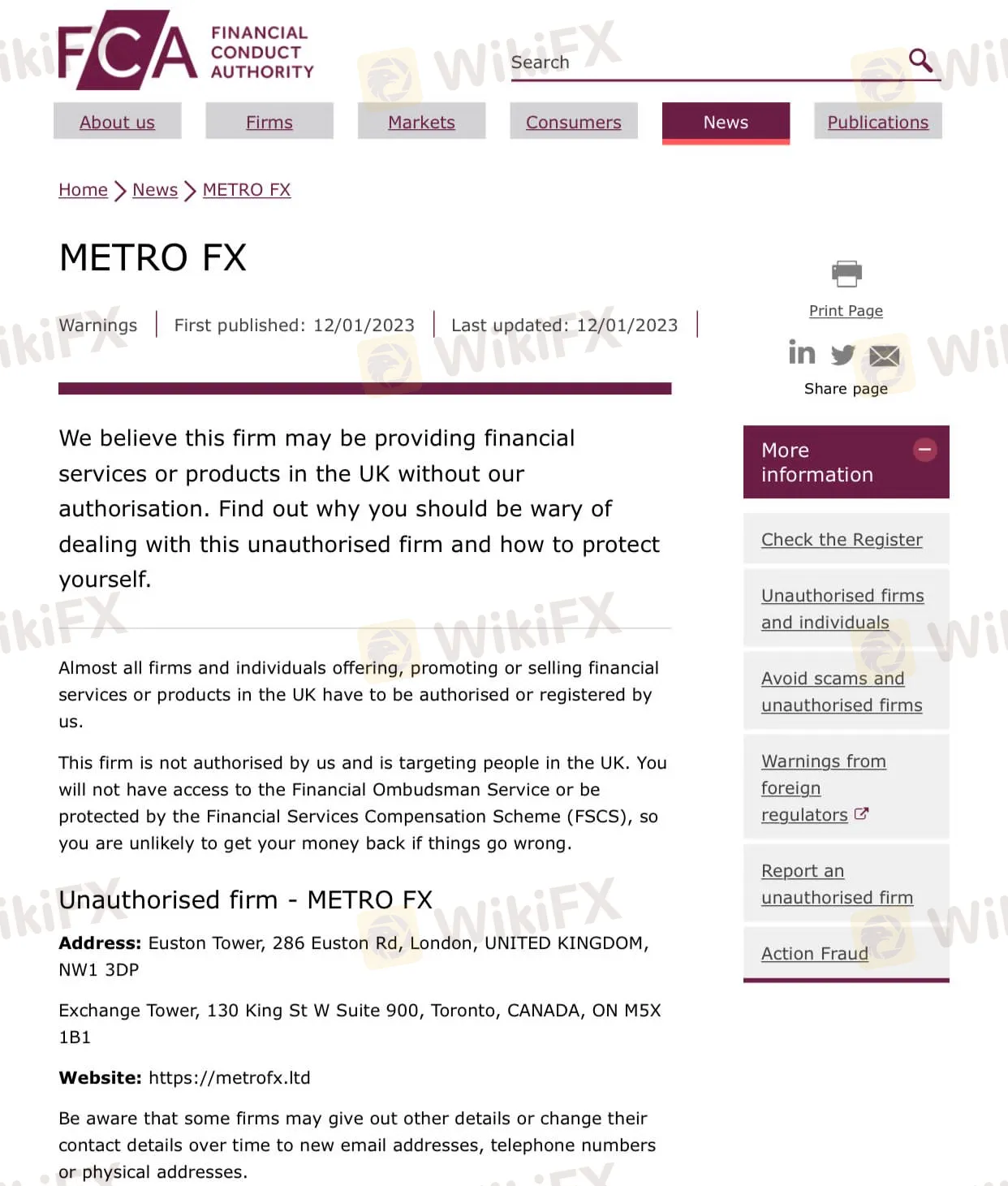 غير مرخص لهم بتقديم خدمات مالية في المملكة المتحدة. لذلك لن تحصل على أي حماية يظهر التحذير من هيئة السلوك المالي (FCA) أن هذه الشركات ربما تقوم بعملية احتيال. لذا يرجى تجنب لا تختار شركة مالية غير مرخصة من قبل سلطة مالية مرموقة. الطريقة الوحيدة للتأكد من أن استثمارك في إدارة جيدة. ووفقًا للقانون ، كل ما عليك هو التحقق مما إذا كانت مرخصة قانونًا أم لا.