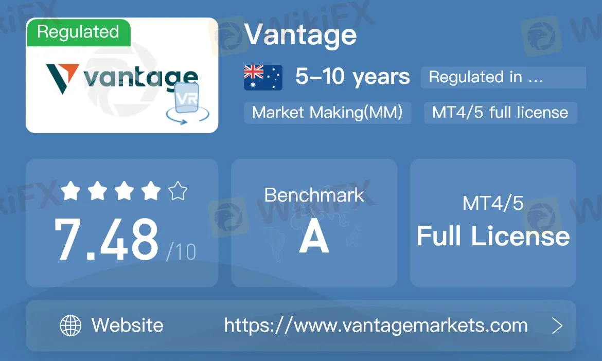 كشف تحقيق WikiFX أن وسيط Vantage لدية تراخيص ASIC,FCA,CIMA و لدية تصنيف WikiFX 7،49/ 10.