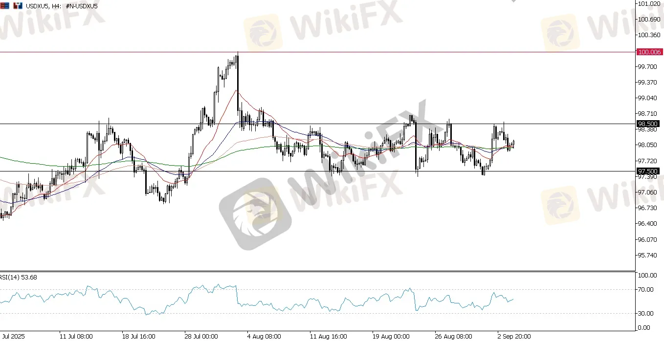 The U.S. dollar index (DXY) is consolidating after recent declines, supported by safe-haven demand but capped by dovish Fed expectations. Traders remain cautious ahead of Fridays nonfarm payrolls (NFP), keeping both DXY and USDJPY confined to narrow ranges.