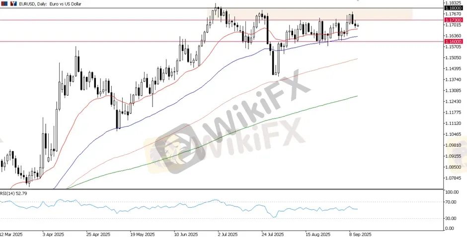 With the U.S. Dollar Index still trapped in the 97.5–98.5 range, EURUSD—being its largest component—has also remained range-bound for more than a month. The pair has repeatedly tested the 1.1730–1.1800 resistance zone, where the rally that started in February 2025 has now stalled.