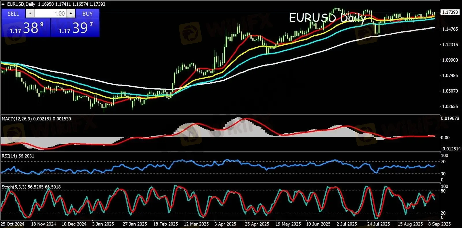 SELL EURUSD 1.1755 target 1.1705