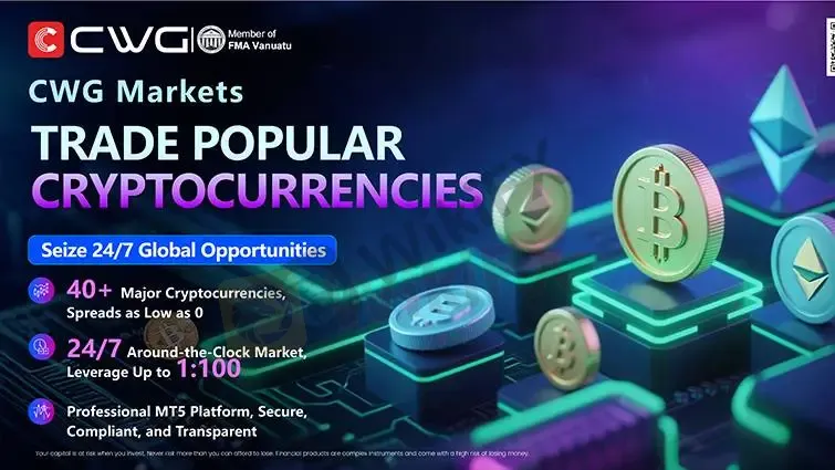In the wave of digital currencies, CWG Markets, with its status as a member of the London Stock Exchange, offers a leading 24/7 global trading platform, allowing you to easily participate in cryptocurrency market investment and trading anytime, anywhere. The platform supports over 40 major cryptocurrencies, including popular digital assets like Bitcoin and Ethereum, helping traders stay on top of market trends and respond quickly to market changes.
