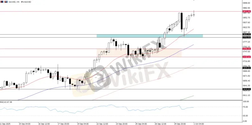 Still, overbought conditions remain a risk. Yesterdays sharp reversal showed selling pressure may intensify in the near term. Key resistance now sits in the $3,870–$3,875 zone, while immediate support is found at $3,830–$3,840.