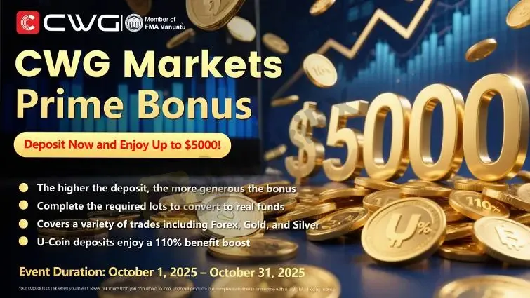 To show appreciation for our valued users, CWG Markets is hosting an exciting Prime Bonus campaign from October 1st to October 31st, 2025. Whether you're a new or existing user, you can earn generous bonuses by making higher deposits. Whats more, you can trade popular assets such as gold, silver, and forex on our platform, with the flexibility to choose investment options that suit you best.