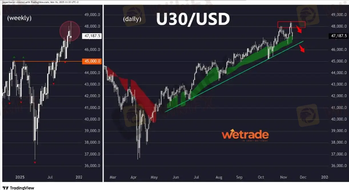 US tech remains overbought after a long rally. Nvidias update could stabilise or deepen the correction.