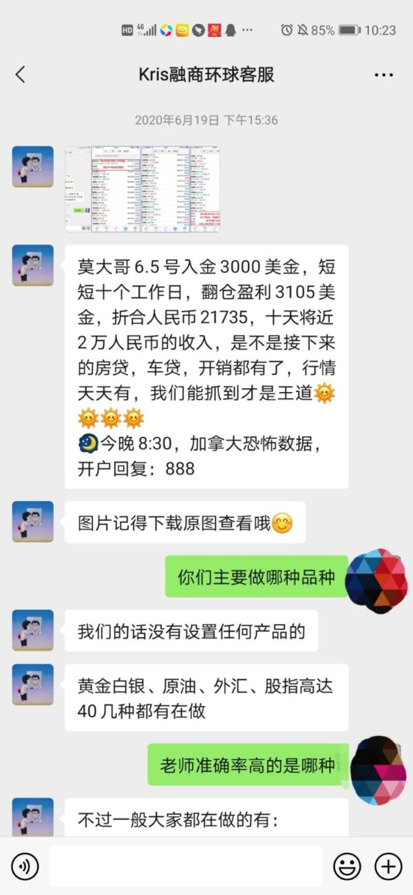 融商环球利用假聊天截图,夸大收益,虚假宣传,诱骗客户入金,喊单带单导致亏损严重!!!