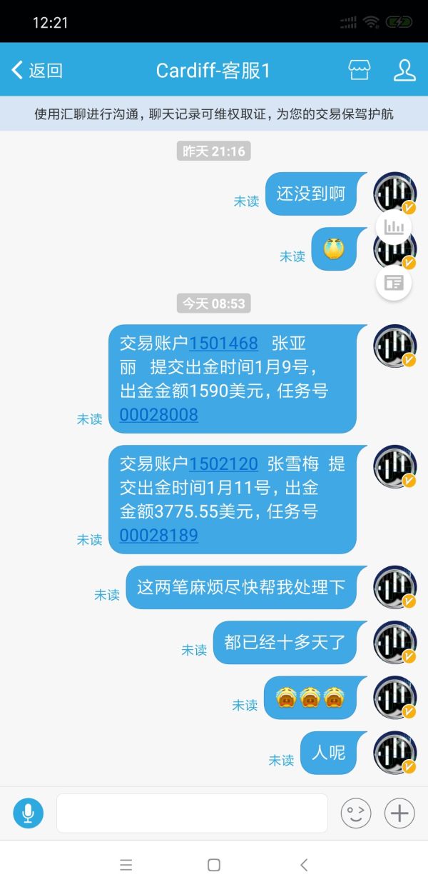 出金半个月了一直未到账,1月9日申请一笔1590美元,11日申请出金3775美元,至今没扣款到账,联系客服说尽快处理,21日22日给客服留言也不回信息。