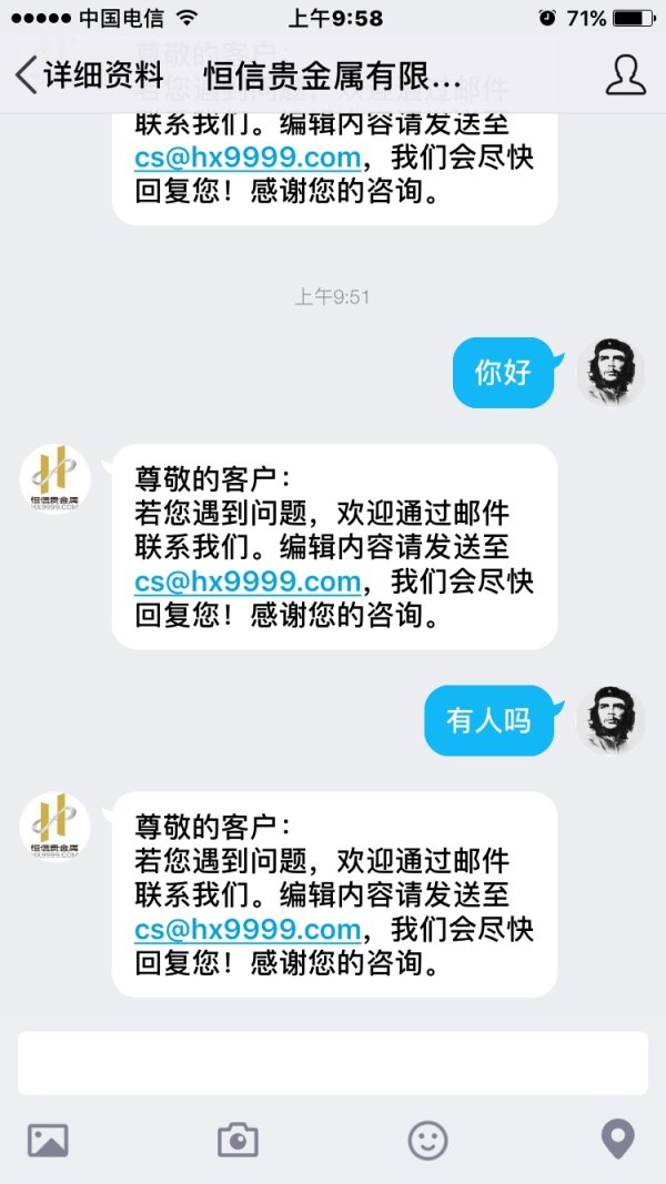 恒信官方qq已经停用,相关业务已经给了下边小公司,可能不受监管