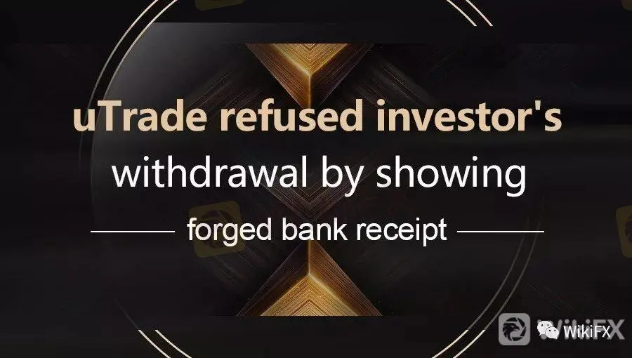 These days WikiFX received investor' s complaint of uTrade for they delayed and rejected investor' s withdrawal application for a long time. The broker even fobbed him off with “forged bank receipt” that was questioned by the investor.