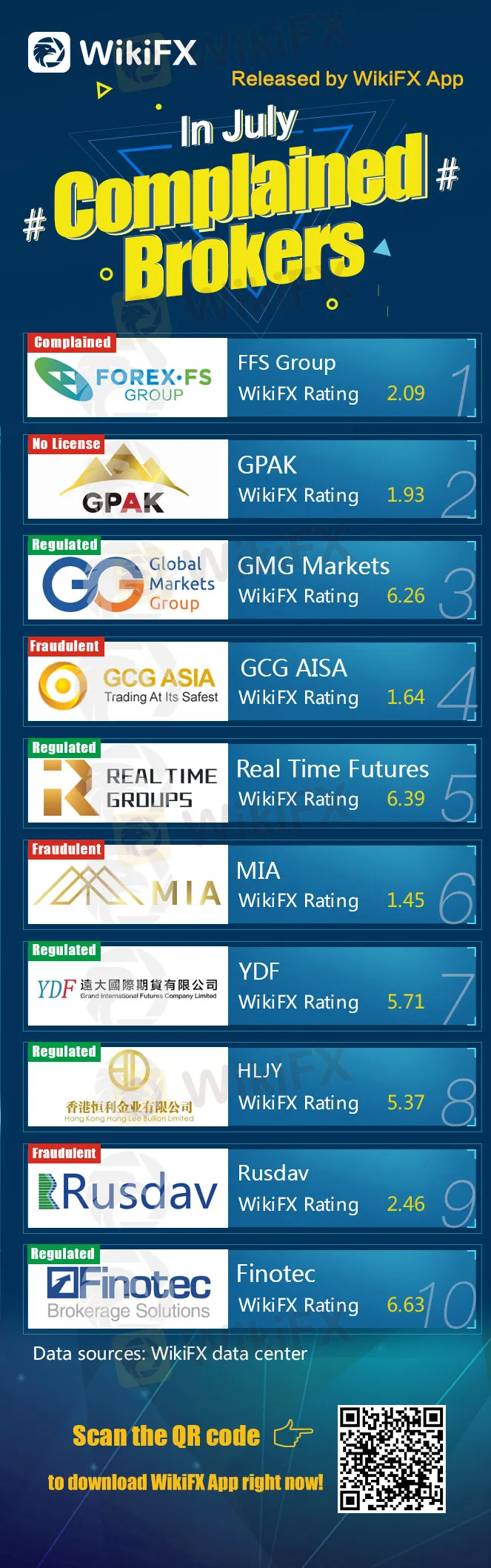 This week WikiFX released the top 10 most complained Forex brokers list in July for investors' reference.