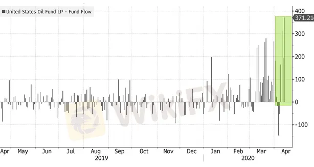 On Tuesday, investors increased their holdings of the United States Oil Fund LPs stock by US$371 million to the highest level since 2008.