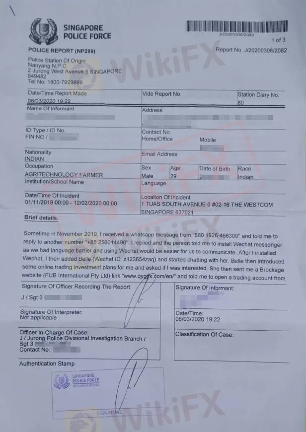 WikiFX summarized the story of the complainant, who was defrauded by the forex broker FUB international and had called the police. Hopefully investors can draw a lesson from his experience and avoid similar traps.