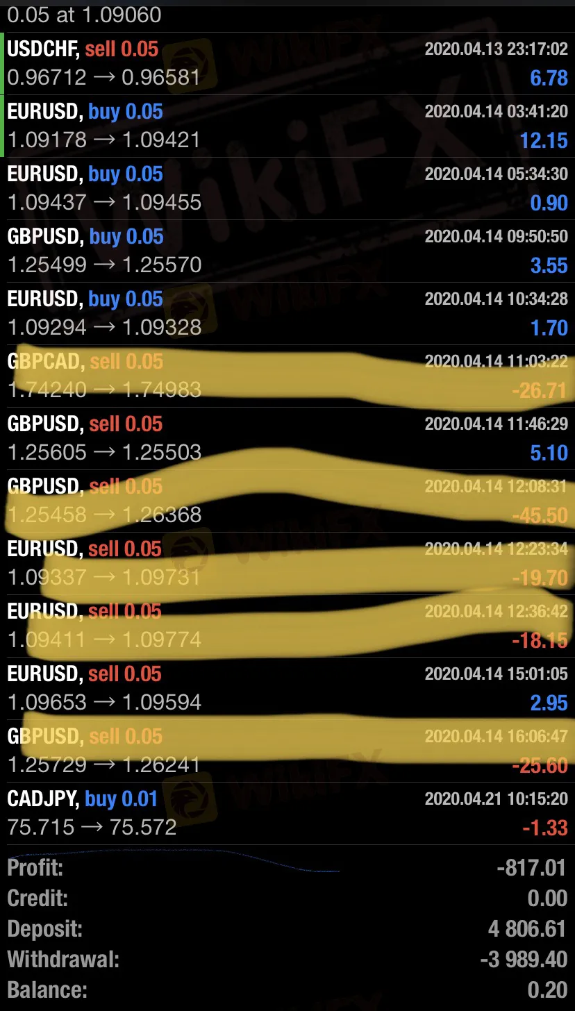 The complainant noticed the irregularities of OctaFXs platform on April 14th. When he woke up in the morning to check the trading results, he found that the platform did not execute his limit order at all when the market situation had been obviously in his favor. He immediately sent an email to the platform about the matter and reset the price of the limit order, but the platform did not responded.