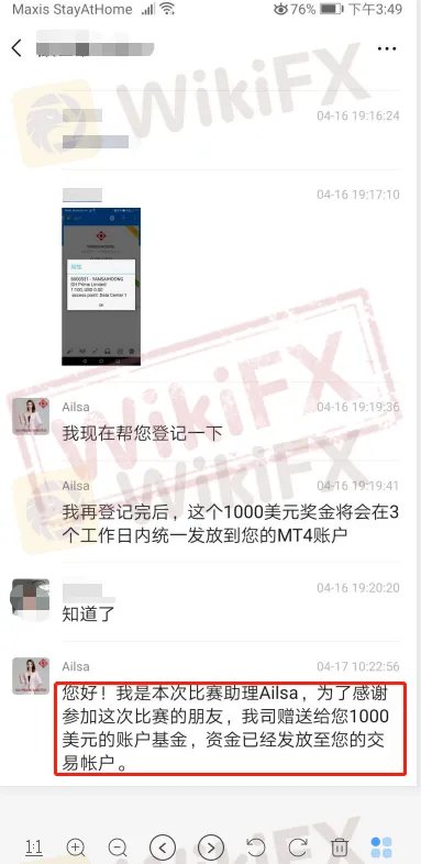 Mr. Yin first learned about GH Prime Ltd, a Hong Kong trading company, in early April by participating in a gold trading contest they hosted. After the event an agent of the company named Ailsa found him and offered him US$1,000 bonus as a reward for his participation. So Mr. Yin gladly accepted the bonus and opened an account at GH Prime platform.