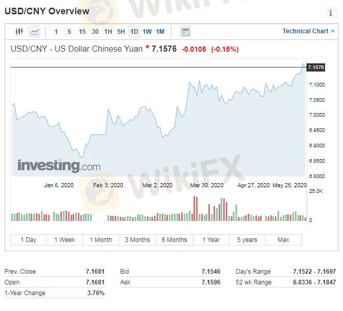 On May 27, after the offshore RMB fell below the 7.15, 7.16, and 7.17 barriers during trading hours, the decline further expanded in the night, falling below the 7.18 and 7.19 barriers to 7.196. The largest drop during May 27 and the early morning of May 28 was 500 basis points.