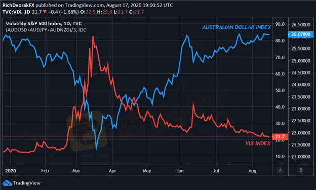 (Comparison chart: Australian Dollar Price & VIX Index)