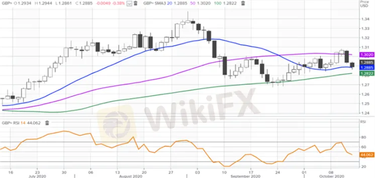 WikiFX News (15 Oct.) - With the EU summit being held on October 15 & 16, the pound witnessed its overnight implied volatility jumping above 13% to a seven-month high. Besides, GBP/USD has lately breached below the support at 1.2885 from the 20-DMA and may end its previous advance in the wake of the summit.
