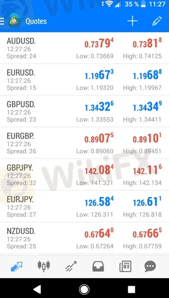 The MT4 on android has an interface that consists of 6 tabs at the bottom, and a menu at the upper left corner.
