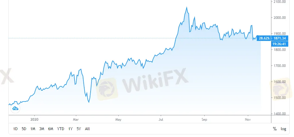 WikiFX News (19 Nov.) - The recent positive news on the Covid-19 vaccine has weighed on the gold price, dragging it down to as low as $1,870 on Wednesday. But the precious metal still holds upside momentum amid the global low-interest rates and the rising balance sheets.