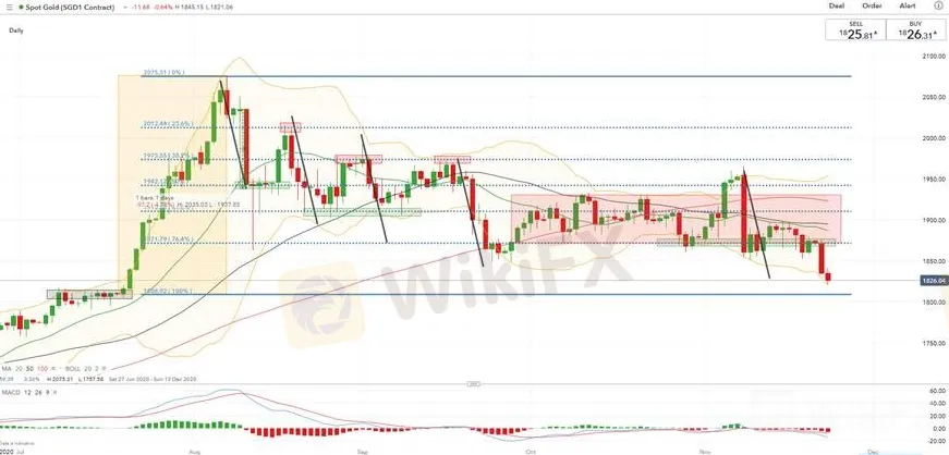 WikiFX News (25 Nov.) - Gold prices traded lower to $1,825 on positive vaccine news. With the pace of redemption accelerated recently, gold prices may fall further, according to gold ETF shares.