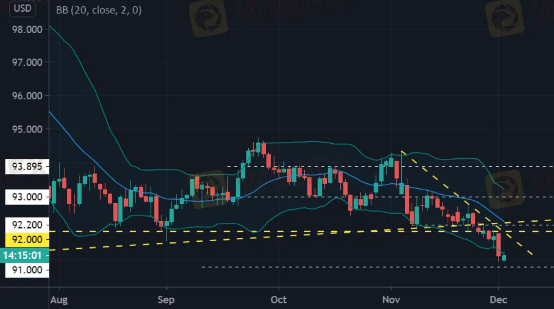 WikiFX News (3 Dec.) - The lower-than-expected employment in November, as released by the Automatic Data Processing (ADP) on Wednesday, dragged the DXY below the 91 barrier, down by 0.22%. The US dollar is expected to stay weak amid the Fed's dovish policies and renewed fiscal stimulus hopes.