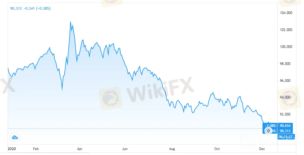 WikiFX News (26 Dec.) - The DXY is expected to continue on its downward trajectory in the upcoming 2021, amid the rising confidence in global recovery and the Fed's enduring accommodative stance of monetary policy.