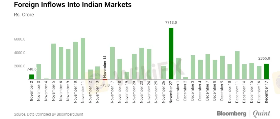 According to the data from NSE, foreign investors have poured over Rs 1.01 lakh crore into the Indian equity markets since the beginning of November.