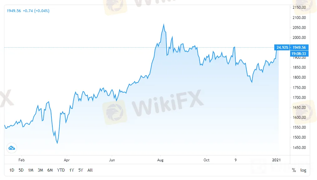 WikiFX News (9 Jan.) - Gold prices ballooned in 2020, attributed to low-interest rates, the economic relief bill, and the weak dollar. These fundamental conditions will still be there in 2021, sending further upsides to gold prices.