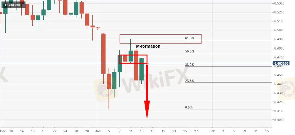 USD/CNH has been in the hands of the bulls on the correction of the bearish trend but the tables could be about to turn.