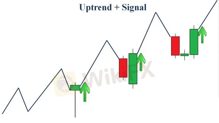 The trading signal of this Fixed Time Trade strategy will be the most reliable reversal candlesticks and candlestick patterns from bearish to bullish in an uptrend.