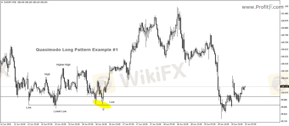 A Quasimodo Pattern is simply a series of Highs/Lows and Higher or Lower highs or lows.