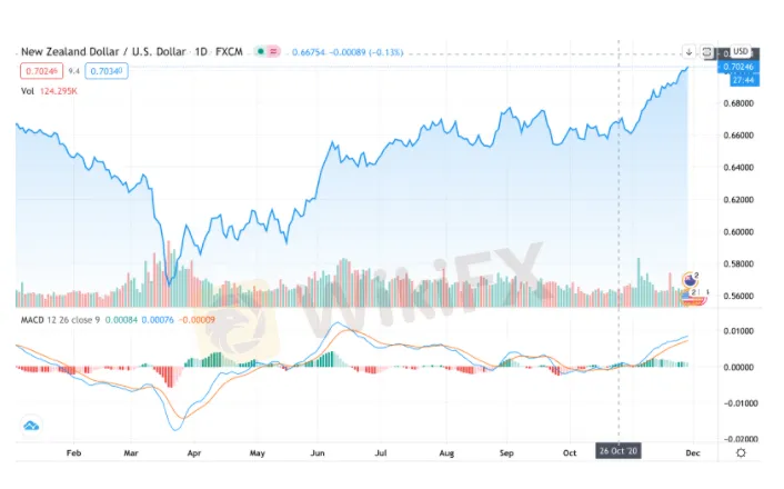 In the NZD/USD chart below, a steep price decline in mid-to-late March is followed by a MACD line movement above the signal line, signaling a buy opportunity. This move coincides with a break above the zero line, adding even more strength to this indicators buy recommendation: