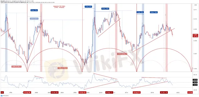 JAPANESE YEN TECHNICAL OUTLOOK: CYCLICAL DOWNTURN IN THE OFFING FOR JPYThe technical outlook for the haven-associated Japanese Yen remains overtly bearish, after the funding currency toppled over 5.5% on average against its major counterparts in the first quarter of 2021. A continuation of this downside move seems in the cards through the coming months, as cycle analysis suggests a cyclical downturn is afoot for JPY.