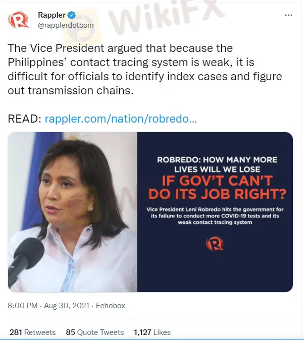The Vice President argued that because the Philippines contact tracing system is weak, it is difficult for officials to identify index cases and figure out transmission chains.