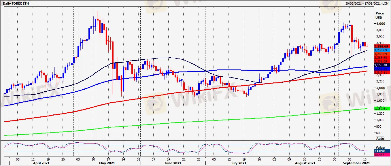 Ethereum holding below short term moving averages at 3350/3400 signal a retest of support at 3150/3050. In fact this was hit yesterday & we bottomed exactly here. A break below 3000 should be a sell signal initially targeting 2890/50. Expect strong support at 2650/2600 but longs need stops below 2500.
