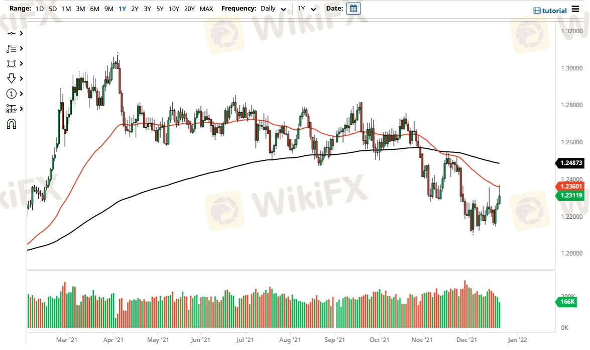 Abstract:The British pound has shot straight up in the air against the Swiss franc during trading on Thursday, but it is worth noting that he gave back about half the gains. Because of this, it will be interesting to see if Sterling can keep its strength, considering that it peeled away from the 50 day EMA almost immediately. The 50% loss of the earlier session gains does not bode well for confidence. You will notice that we recently had seen a massive shooting star that reached all the way up to about the highs of where we were during the day on Thursday. In other words, there is probably a significant amount of resistance in the 1.2360 level.