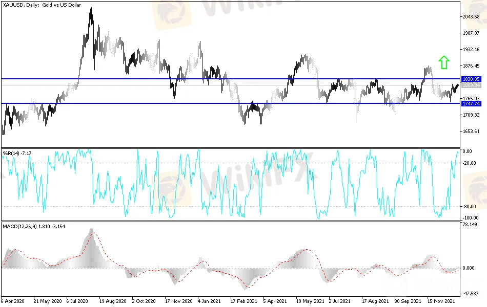 The continued decline of the US dollar still supports gold bulls in moving higher. The price of gold is stable around the level of $1813 as of this writing, its highest in over a month. Trading in narrow ranges in light of the Christmas holidays and the reluctance of investors to venture cause poor liquidity in the markets in general. Gold held steady as year-end optimism helped push US stocks to a new record high, as traders bet that global economic recovery could beat risks from omicron and monetary policy tightening.