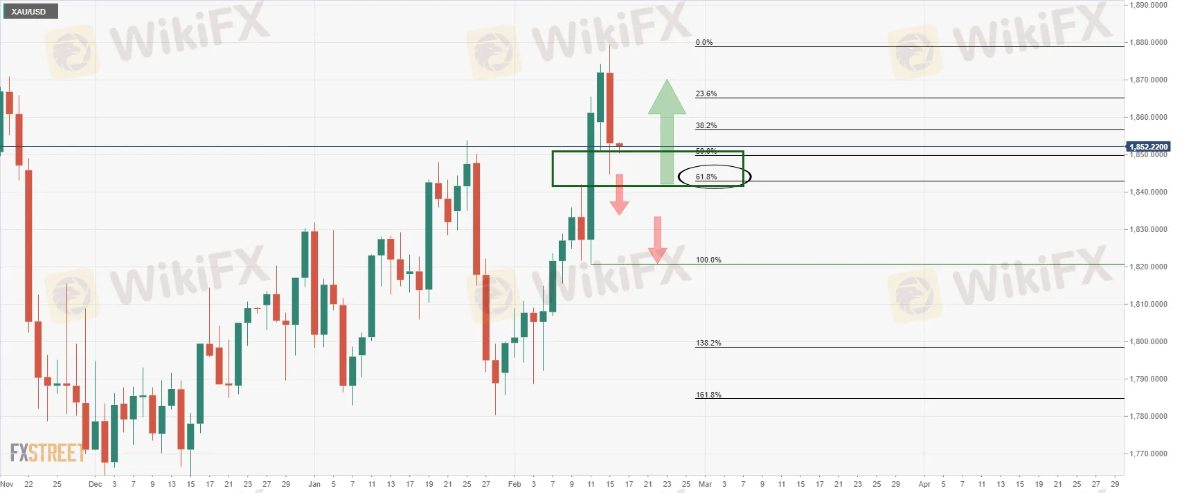 Update: Gold is testing the commitments of the bulls at this juncture at an important support structure on the daily chart. In Asia, the price has been giving way to selling pressures with the early New York trade bid level around $1,850 acting as a magnetic pulling force. The eight-month peak was left behind on Tuesday with hints of a de-escalation in the Russia-Ukraine standoff as detailed below.