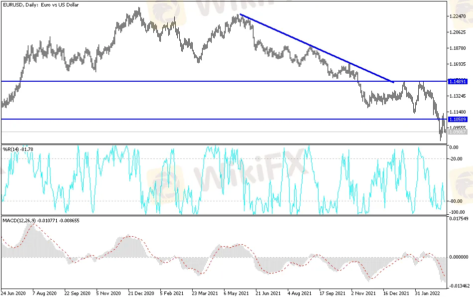 Abstract:The price of the EUR/USD currency pair was not happy with the bullish rebound attempts last week. It moved towards the resistance level of 1.1121 immediately after strong signals from the European Central Bank for the opportunity to raise interest rates closer than previously thought. At the end of the week's trading, the EUR/USD pair collapsed in the same descending path, reaching the support level of 1.0902, which closed trading near it. As it is known that the euro is most negatively affected by the consequences of the Russian-Ukrainian war.