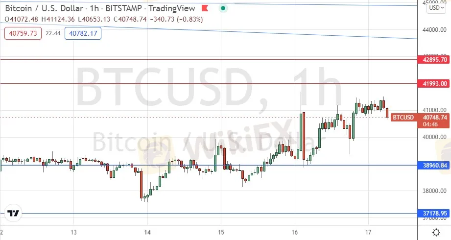 I wrote on Wednesday last week that we were seeing a more bullish technical picture now, and I thought that the best opportunities that might set up would probably be either a long trade from a retracement to $40,568 or a short trade from a bearish reversal at $42,896.
