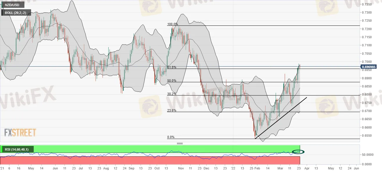 Kiwi bulls are firmer above 61.8% Fibo retracement at 0.6957.