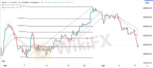 Bitcoin declined sharply on Monday, continuing a sell-off that started on March 28th when it rose to a high of $48,300. This sell-off has mirrored the performance of other assets, especially the Nasdaq 100 index. Indeed, the tech-heavy Nasdaq index has fallen by almost 9% from its highest point on March 29th.