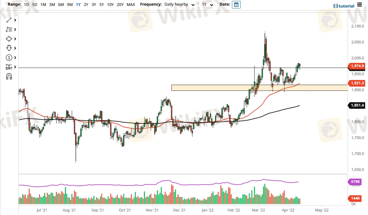 Abstract:Ultimately, this is a market that it is more likely to go higher than lower, due to the fact that the markets have so much to concern themselves with at the moment. Gold markets only had a limited amount of off-hours trading in the futures markets on Good Friday, but there was a little bit of action in the CFD market. When you look at this chart, you can see that we had recently broken out above a significant barrier in the form of the $1970 level, showing signs that momentum is starting to pick up again. At this point, I think that the gold market is more likely than not to attempt a move toward $2000 above.