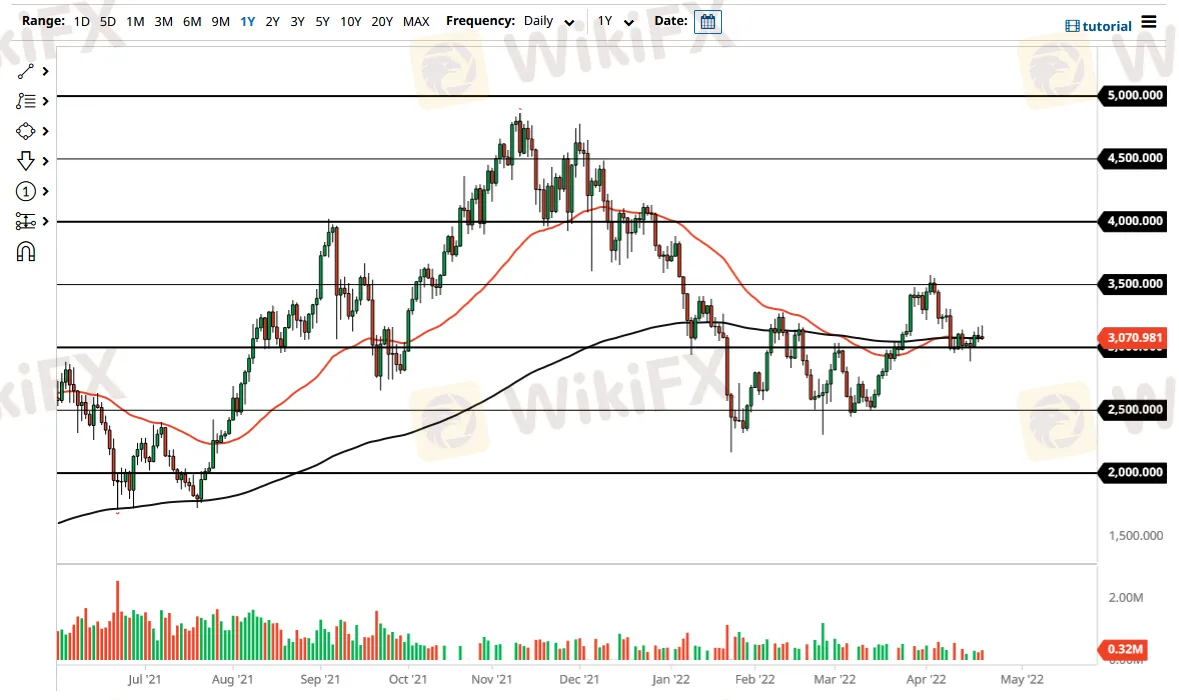 Abstract:The Ethereum market initially rally during the trading session on Thursday but has given back gains to show signs of hesitation. By doing so, the market is likely to continue struggling right around the 200 Day EMA, which is also right on top of the 50 Day EMA. In other words, this is a market that does not understand where it wants to be at the moment. The $3000 level should continue to be an area of interest going forward, as it is a large, round, psychologically significant figure, and an area where we have seen buyers previously.