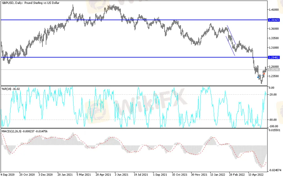 According to the technical analysis of the pair: The performance of the GBP/USD currency pair is in a neutral position with a bearish bias. The bears' control will strengthen if the currency pair returns to the support levels 1.2465 and 1.2300, respectively. With the last level, expectations of psychological support will return to 1.2000 again. On the other hand, the bulls will collide in the event of a return to control with the resistance levels 1.2635 and 1.2775. Continuing pessimism on the part of the Bank of England and the results of British releases will continue to support the selling of sterling from every upward level.