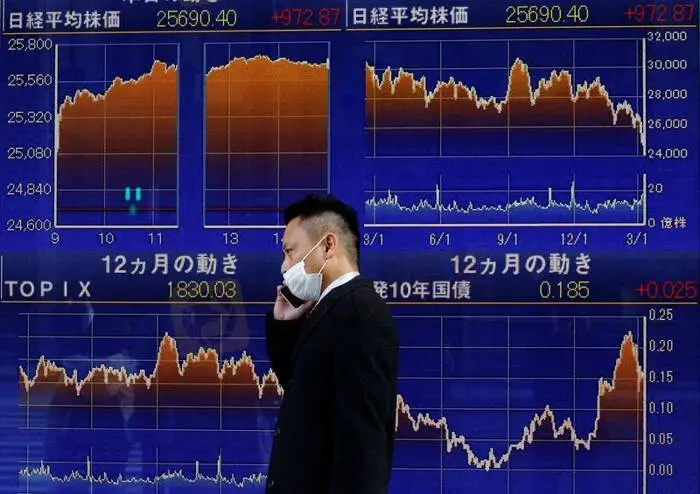 The falls in Asia contrasted with a more upbeat mood on Wall Street, where the Dow Jones Industrial Average rose 0.6%, the S&P 500 gained 0.95% and the Nasdaq Composite added 1.51%. [.N]