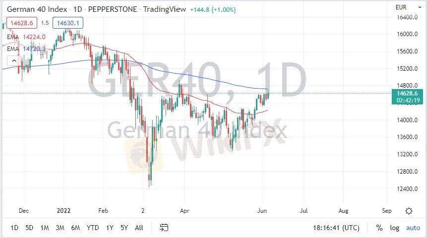 Abstract:It certainly looks as if we have been rather bullish as of late, but one could make an argument for a bit of a rising wedge as well. The DAX initially rally on Monday to slam into the €14,750 region. This is where the 200-day EMA resides, so a lot of technical traders probably started to get short in that area. At this point, the market is forming a bit of a shooting star for the training session, and looks as if we may be running out of momentum. If we break down below the bottom of the candlestick, then could perform the necessary move to get others to short the market.